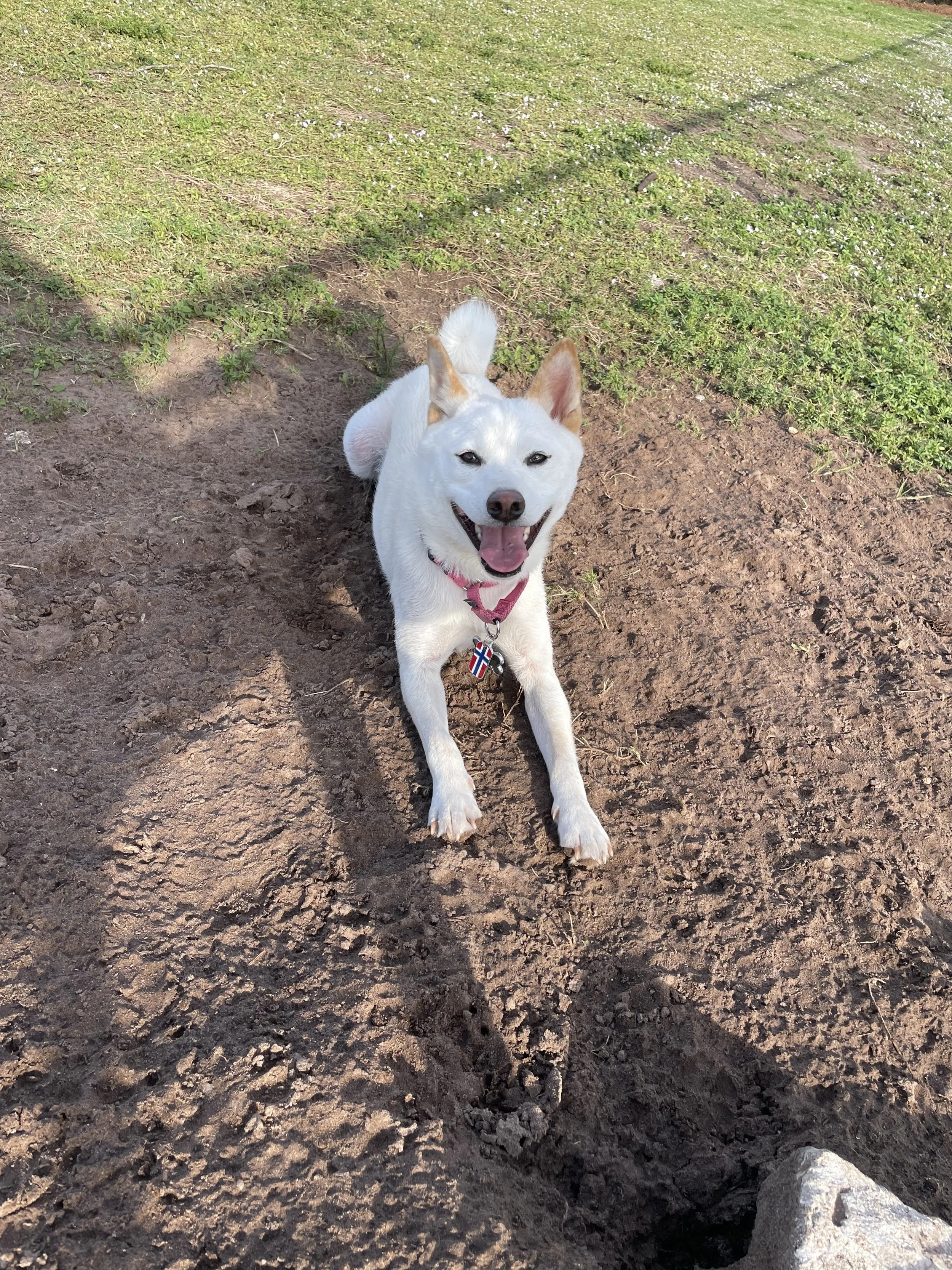 Oslo Kneeland is a cream Shiba Inu getting his sniffs in at Fort Greene Park.🌳